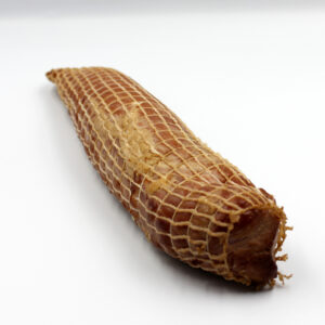 Wyrazista w smaku kiełbasa została przyrządzona z mięsa wieprzowego polskiego pochodzenia. To doskonała propozycja dla koneserów smaku i tradycyjnych produktów. Najwyższej jakości mięso oraz idealnie skomponowany bukiet naturalnych przypraw, sprawia, że cieszy się ona dużym zainteresowaniem wśród Naszych klientów. Kiełbasa została uwędzona w tradycyjnej wędzarni drewnem olchowym, dzięki temu uzyskuje charakterystyczny i niepowtarzalny smak.